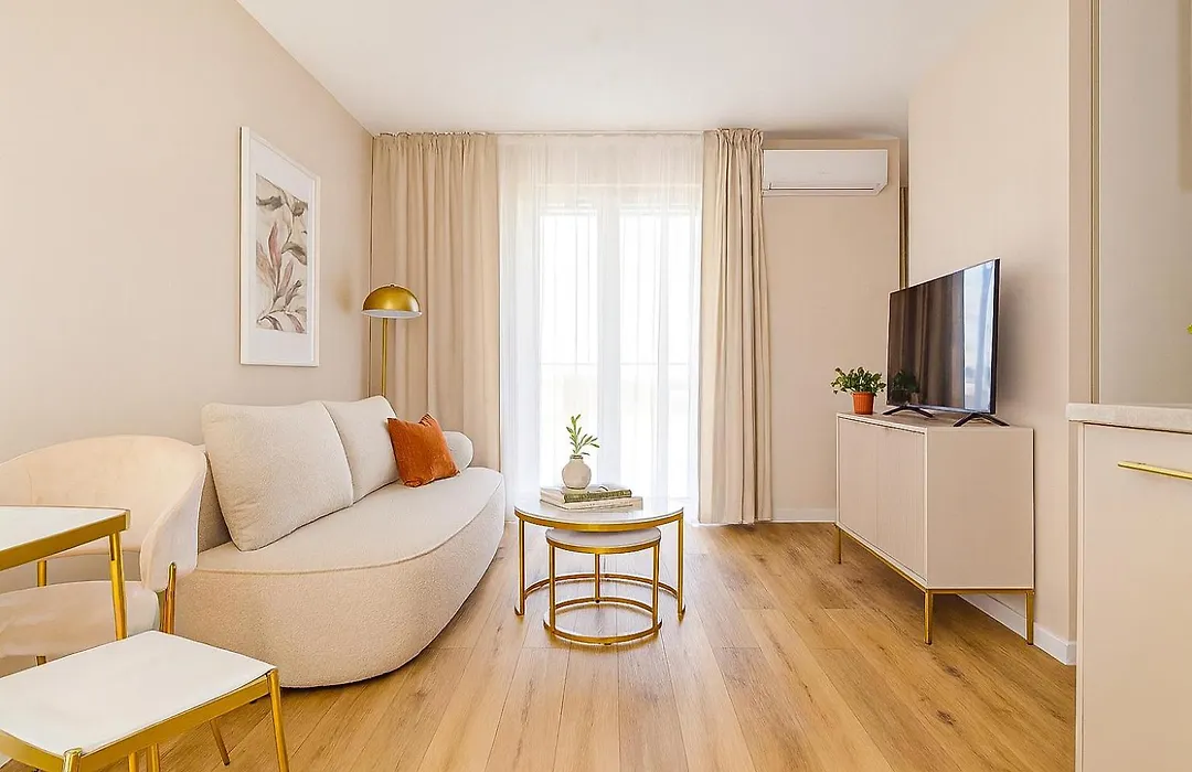 Ten apartament oferuje patio, balkon i pełnowymiarową kuchnię, a także takie udogodnienia jak klimatyzacja. W obiekcie goście znajdą suszarkę do włosów i ręczniki kąpielowe w łazience.